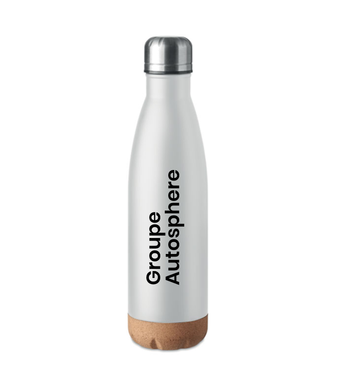 Bouteille à vide en acier inoxydable à double paroi avec détail de la base en liège.